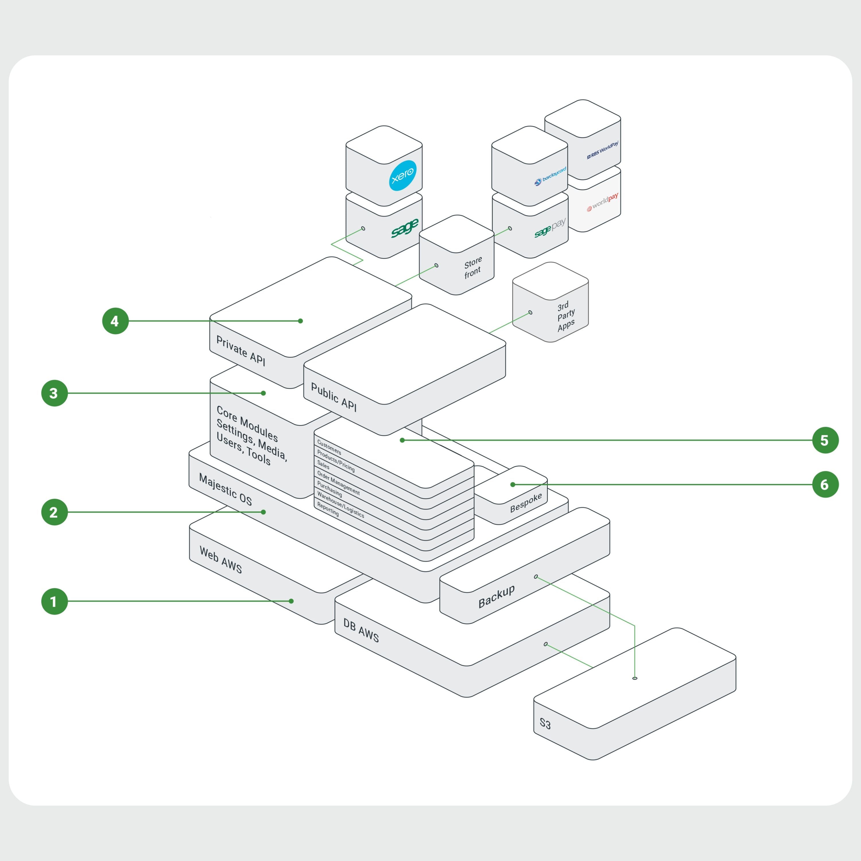Majestic OS works with you. Our public and private APIs allow the system to be easily extended and integrated into other services.